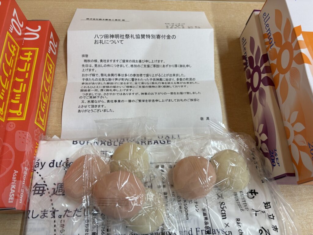 2025.11.20 ⁄ 未分類 「今年の御祭礼も晴天の中、行われました」 毎年お天気に恵まれる、弊社地元の神社の御祭礼。 今年も楽しみにしておりましたが、体調不良により伺うことができませんでした。 後日、祭礼余興係の方から多くの品々を頂戴致しました。 ありがとうございました。 一日の寒暖差が激しく、朝晩とても寒くなって来ましたので 皆さんもお身体に気を付けてお過ごしくださいね。 前へ 一覧へ戻る
